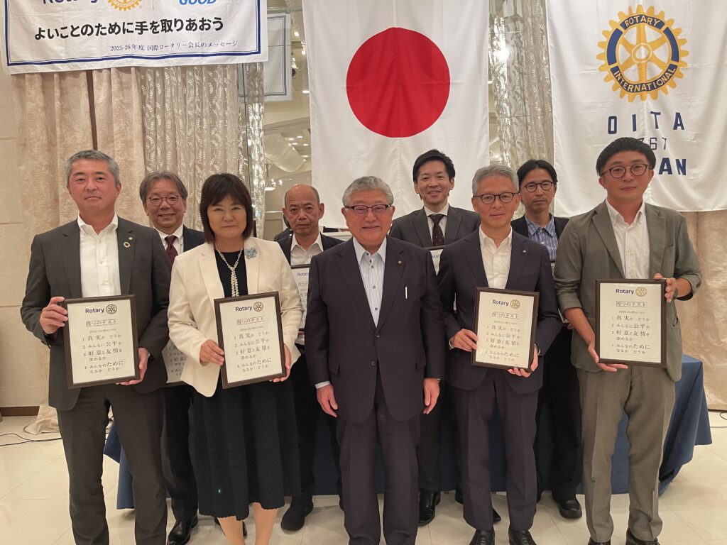 2025年4月~9月入会の方からご挨拶いただき仲摩会長から「四つのテスト」が手渡されました。